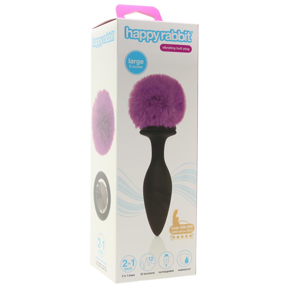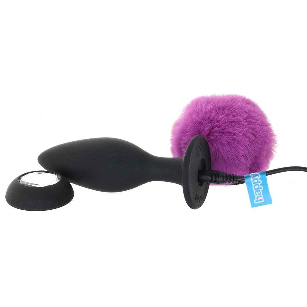 Your Happy Rabbit Vibrating Bunny Tail Butt Plug is rechargeable using an included cable. Remove the purple puff or the gemstone base to reveal the charge port.
