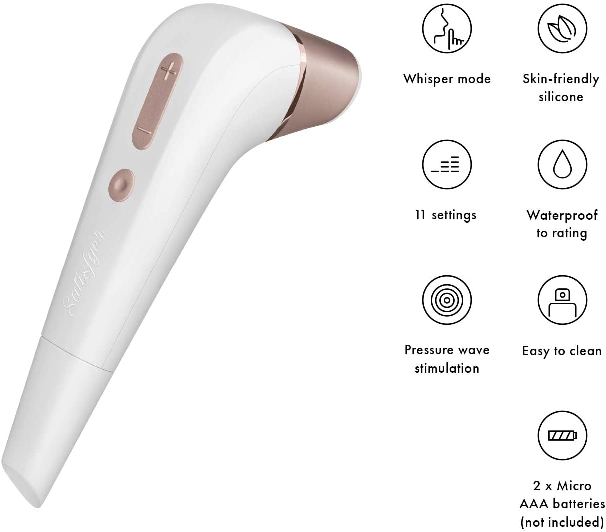 In body safe, ultra hygienic silicone and ABS plastic, the Number Two cleans easily using warm soapy water or a good toy care fluid/foam. Gently remove the circular treatment tip to cleanse thoroughly. Compatible with any great quality water based lubricant- avoid silicone lubes and contact with other silicone toys and products. Requires 2 AAA batteries (sold separately. Waterproof.